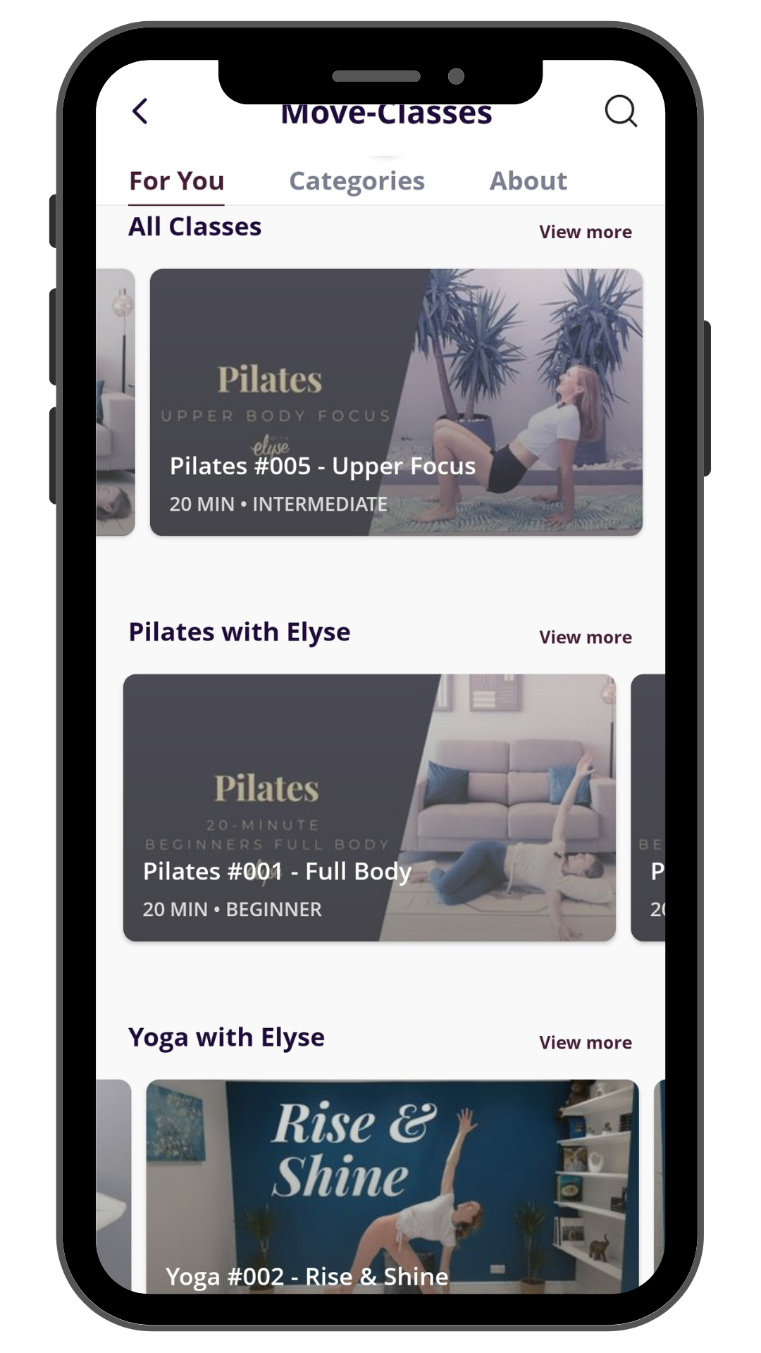 Subscribe to the Move-ment.fit App for a growing library of classes varying in length and difficulty